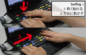 キーボード上を打鍵入力に留まらないサーフェースコンピューティングの新たな場として開拓する取り組みで、これまでになく安価かつ簡単なハードウェアセットアップで実現可能な点に新規性があります。
